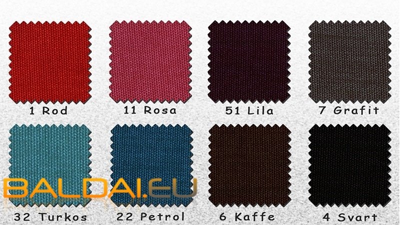 Spalva: juoda, pilka, ruda, bordo, raudona, mėlyna.